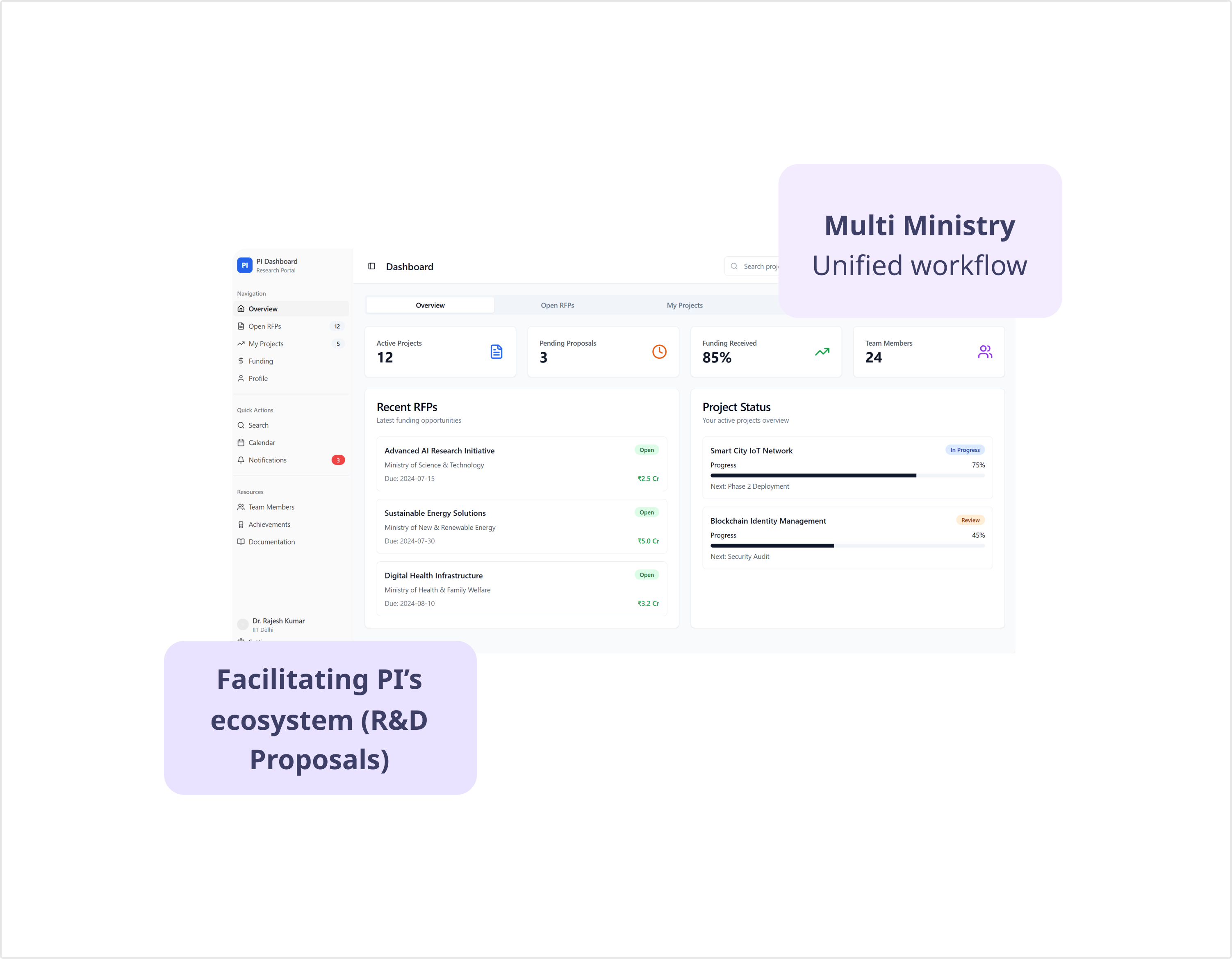 UPMS (Unified Project Management System) is a centralized digital platform designed to manage the complete lifecycle of Government-funded Research and Development (R&D) projects across India.